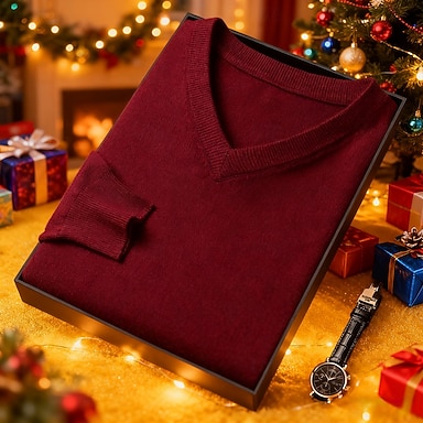 Hombre Jersey navideño Suéteres de Navidad suéter navideño Suéter de punto Estriado Tejer Tops regulares De Punto Plano Escote en Pico Moda Básico Vacaciones Ropa Cotidiana Ropa Otoño Invierno Color