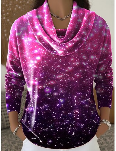 Mujer Sayo Tee Estampado Graphic Copo Elegante Vintage Moda Manga Larga Cuello Alto Tops regulares Diario Noche Fin de semana Azul Piscina Negro Vino Otoño