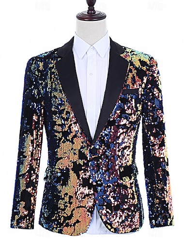 Hombre Chaqueta americana Cuello de muesca Moda Fiesta Lentejuela Color sólido Blazer Negro Ajustado Recto 1 botón