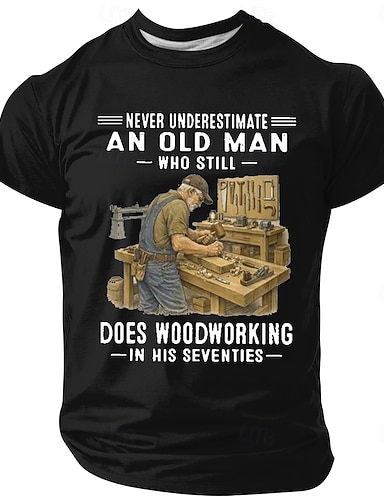Nunca subestimes a un anciano que todavía trabaja la madera a sus setenta años. Camiseta vintage de carpintero con estampado gráfico, corte casual, regalo de cumpleaños o jubilación para abuelo. Ropa
