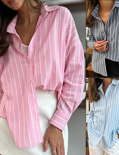 Mujer Blusa Botones Estampado A Rayas Elegante Casual Manga Larga Cuello Camisero Tops largos Diario Azul Piscina Rosa Gris Primavera Otoño