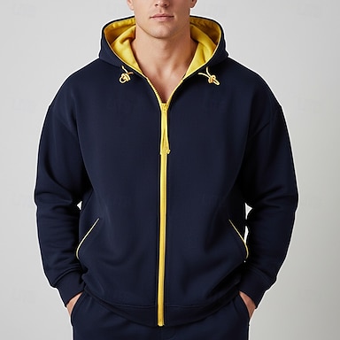 Hombre Sudadera Sudadera con capucha y cremallera completa Negro Amarillo Rojo Azul Piscina Gris Oscuro Con Capucha Bloque de color Retazos Deporte Diario Festivos Poliéster Ropa de calle Básico