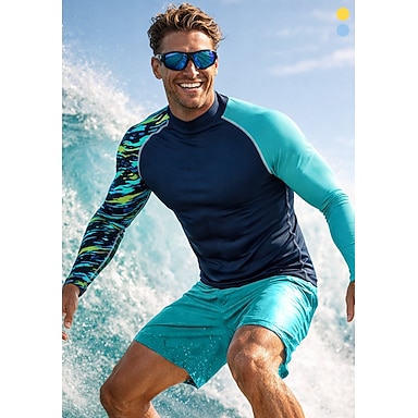 Hombre Medio Estándar Camiseta Protección Solar Surf Camiseta de Baño Alfabeto Abstracto Bloqueo de color Cerrar UPF50+ Protección UV Secado rápido Manga Larga Bañadores Protección para Erupciones