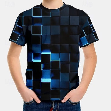 Día del Niño Chico 3D Graphic Bloque de color Impresión 3D Camiseta Manga Corta Impresión 3D Verano Ropa de calle Básico Casual Niños 2-12 años