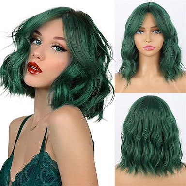 Peluca corta ondulada con flequillo para mujer, peluca sintética encantadora hasta los hombros, estilo bob rizado, para mujer, con cabello ondulado natural, resistente al calor, para uso diario en