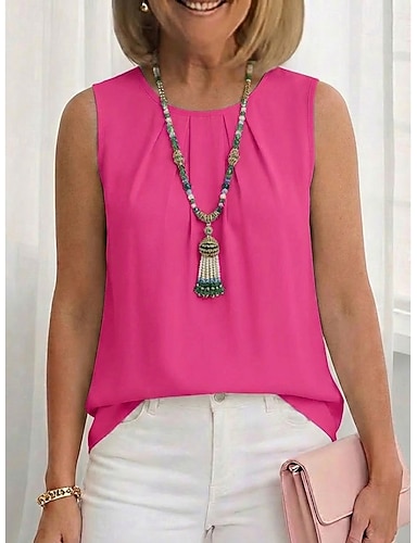 Mujer Blusa Tops de gasa Frunce Plano Moderno Casual Sin Mangas Cuello Barco Tops regulares Diario Festivos Noche Blanco Verde Claro Vino Rosa Brillante Azul claro Verano Primavera