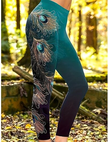 Mujer Polainas Leggings cómodos Vacaciones Vintage Básico Longitud total Alta cintura Graphic Estampado Comodidad Cómodo Alta elasticidad Casual Diario Vacaciones Azul Piscina De color verde oscuro