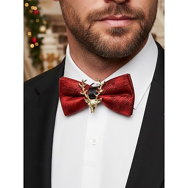 Pajarita de terciopelo para hombre con broche de cabeza de ciervo dorada, elegante corbata ajustable en varios colores, perfecta para fiestas navideñas, bodas y eventos festivos formales.