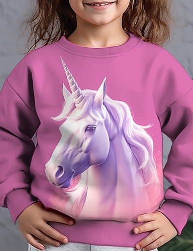 Chica 3D Animal Unicornio Sudadera Manga Larga Impresión 3D Primavera Invierno Activo Deportes Moda Poliéster Niños 3-12 años Exterior Diario Interior Ajuste regular