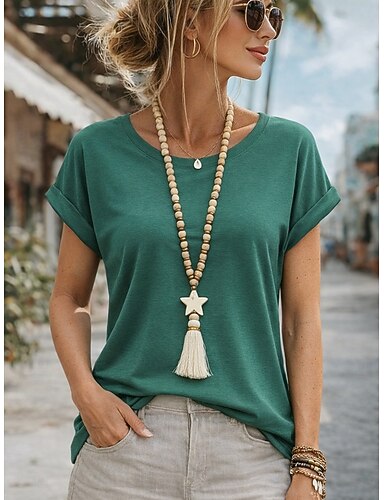 Mujer Camiseta Camiseta superior Color sólido Moda Elegante Básico Manga Corta Cuello Barco Tops regulares Diario Noche Fin de semana Negro Rosa Vino Morado Verde Trébol Verano Primavera