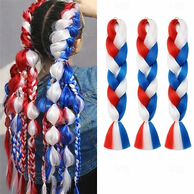 extensiones de cabello trenzadas jumbo rojas, blancas y azules para festivales &peinados para fiestas