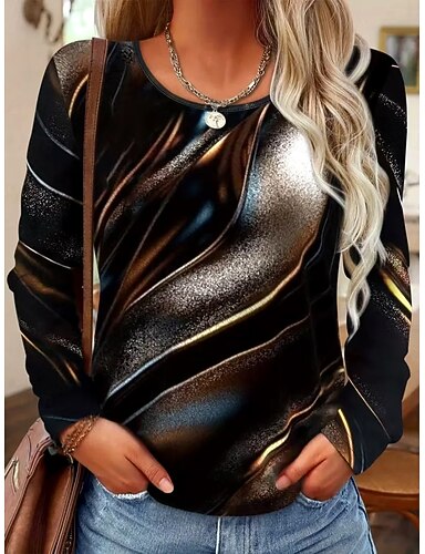 Mujer Camiseta Estampado Ombre Graphic Geométrico Vintage Moda Elegante Manga Larga Cuello Barco Escote Redondo Tops regulares Diario Fin de semana Negro Otoño Invierno
