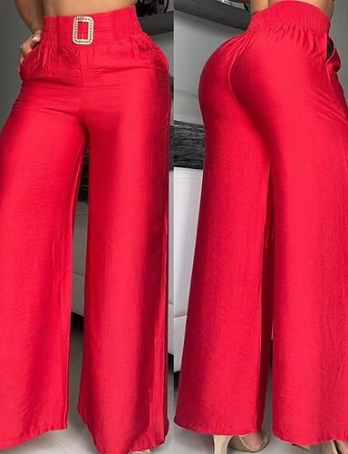 Mujer Perneras anchas pantalones de traje Pantalones Pantalones palazzo Moda Ropa de calle Longitud total Alta cintura Plano Transpirabilidad Cómodo Calle Ropa Cotidiana Noche Negro Blanco Amarillo
