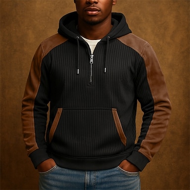 Hombre Sudadera Sudadera Con Capucha Sudadera con un cuarto de cremallera Punto acanalado Marrón Cuello Mao Plano Retazos Cremallera Con Texturas Deporte Casual Diario Vintage Fresco Ropa deportiva