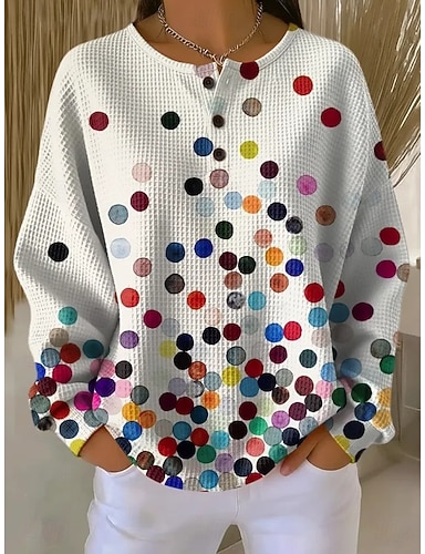 Mujer Sudaderas Botones Graphic Geométrico Bloque de color Moda Casual Estampado Manga Larga Cuello Barco Escote Redondo Tops regulares Casual Calle Rosa Claro Rosa Verde Trébol Color Caquí Beige