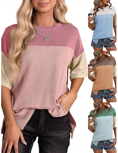Mujer Blusa Retazos Bloque de color Vintage Elegante Casual Manga Corta Cuello Camisero Tops regulares Diario Festivos Noche Negro Rosa Azul cielo Verde Trébol Caqui Verano Primavera