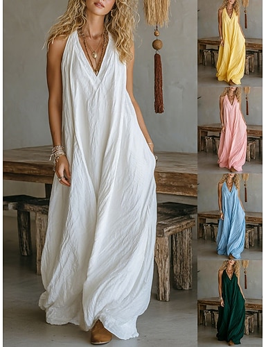 Vestido de Noche A-Line Elegante Formal Vestido Formal de Boda Largo de Piso Sin Mangas Cuello en V con Bolsillo de Saten y Bolsillo