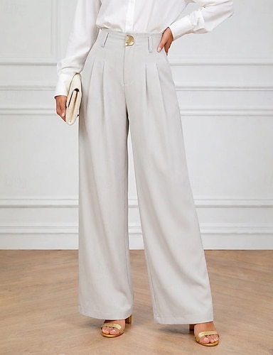 Mujer Perneras anchas Chinos Elegante Moda Ropa de calle Longitud total Alta cintura Plano Bolsillo Cintura elástica Confortable Comodidad Suave Rígido Exterior Oficina Formal Albaricoque Primavera