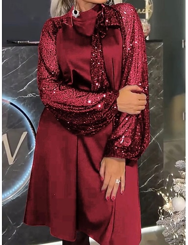 Navidad Mujer Vestido hasta la Rodilla Vestido de una línea Elegante Casual Fiesta Ajuste regular Color sólido Manga Larga Cuello Alto Azul Piscina Negro Rojo Morado Primavera Otoño Invierno