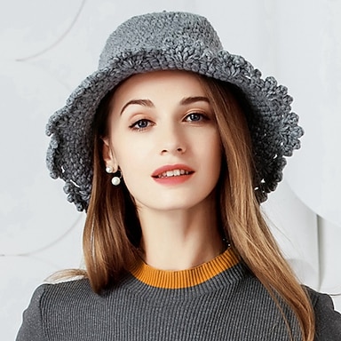 Nuevo sombrero de mujer de tela de lana a la moda de otoño e invierno con borde ondulado y ala ancha