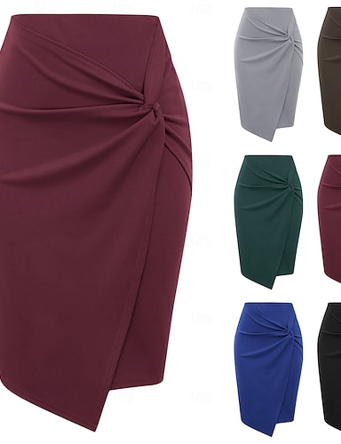 Mujer Elegante Moda Casual Sobre la rodilla Alta cintura Faldas Plano Frunce Rígido Diario Calle Azul Piscina Vino Negro Verde Trébol Verano Poliéster