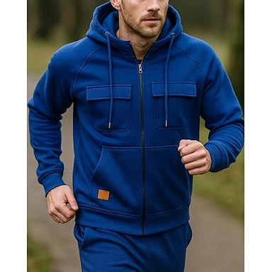 Hombre Conjunto de sudaderas con capucha Escote en Pico Diseño Casual Diario Shoftshell Color sólido/liso Negro Blanco Azul Real no imprimible Ropa de Deporte Casual / Diario Otoño