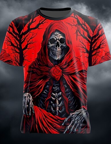 Hombre de impresión en 3D La muerte 3D segador Camiseta Manga Corta Camiseta Impresión 3D Cuello Barco Camisa Exagerado Design Horror Fiesta Calle Festivos Amarillo Rojo Morado Verano Primavera Todas