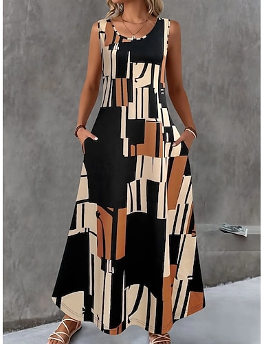 Mujer Vestido Midi Vestido informal Vestido de una línea Vestido de Tanque Elegante Moda Moderno Exterior Vacaciones Noche Ajuste regular Geométrico Abstracto Sin Mangas Cuello Barco Azul Piscina