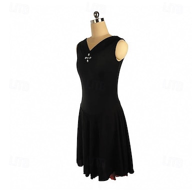 Vestido de patinaje artístico Mujer Chica Patinaje Sobre Hielo Vestidos Negro Retazos Espalda Abierta Malla Licra Elástico Entrenamiento Profesional Competición Ropa de Patinaje Cristal / Strass Sin