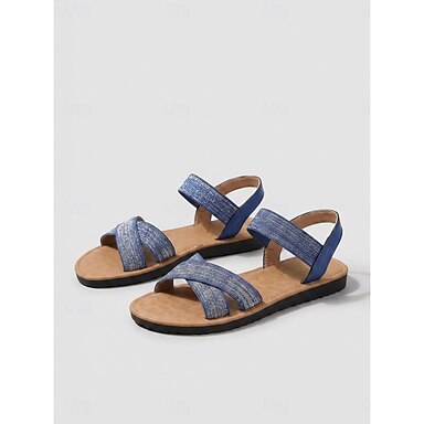 Sandalias planas azules cómodas con tiras cruzadas para mujer: estilo informal de verano para caminar a diario, viajar, usar en el jardín, la playa y al aire libre.