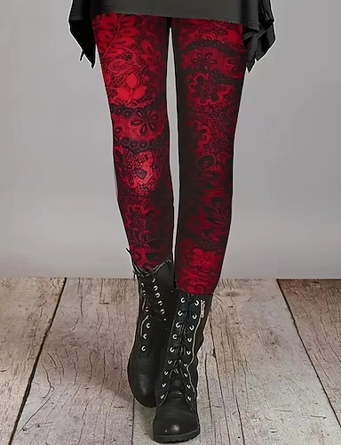 Mujer Pantalones Polainas Leggings cómodos Ropa de calle Casual Longitud total Alta cintura Floral Cintura elástica Estampado Transpirabilidad Cómodo Elástico Vacaciones Calle Ropa Cotidiana Rojo