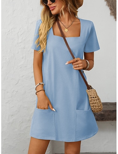 Mujer Mini vestido Vestido informal Elegante Moda Moderno Exterior Vacaciones Noche Ajuste regular Plano Manga Corta Escote Cuadrado Negro Verde Trébol Rosa Rojo Azul claro Verano Primavera