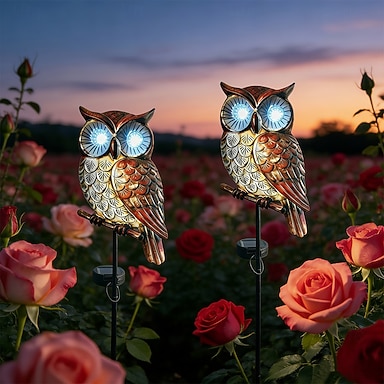 Luces solares exteriores impermeables con forma de búho de hierro, lámparas LED decorativas para jardín, patio, césped, camino, villa – festivas &Iluminación ambiental para fiestas de verano