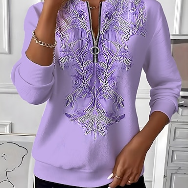 Mujer camisa boho Camiseta Camiseta superior Estampado Floral Moda Casual Manga Larga Cuello Barco Tops largos Diario Fin de semana Ropa de vacaciones Morado Primavera Otoño