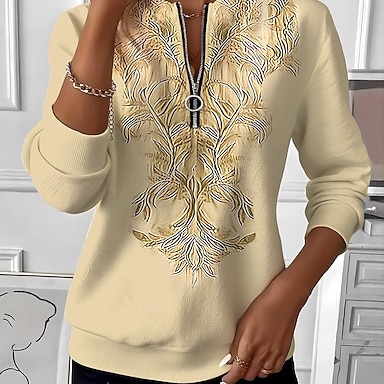 Mujer Sudadera Sudaderas con cremallera Retazos Cremallera Estampado Graphic Geométrico Bloque de color Moda Casual Manga Larga Cuello Barco Tops regulares Calle Uso Diario Azul Piscina Vino Verde