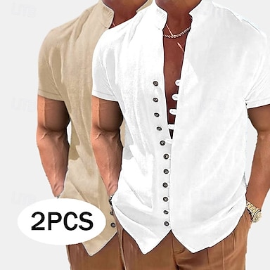 Hombre Camisa de lino Camisa de verano Ropa de playa Abotonar la camisa Plano Vacaciones Maldición Blanco + caqui Caqui + Negro Verde+Caqui Blanco + negro Manga Corta Escote Chino Verano Primavera