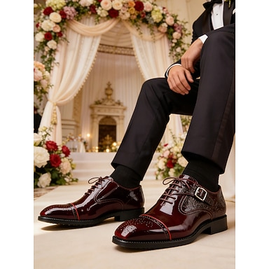 Zapatos de vestir para hombre: zapatos de charol bicolor burdeos con diseño de cordones para fiestas de baile y ocasiones especiales.