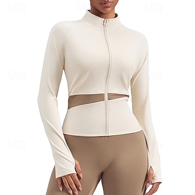 Mujer Retazos Chaqueta para correr Chaqueta para exteriores Chaqueta deportiva Verano Primavera Otoño Full Zip Delgado Manga Larga Secado rápido Ligero Elástico Transpirable Gimnasio Corriendo