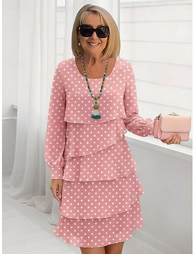 Mujer Mini vestido Vestido de cambio Vestido informal Vestido de raso Elegante Moda Moderno Diario Exterior Fin de semana Ajuste regular A Lunares Manga Larga Cuello Barco Azul Piscina Negro Blanco