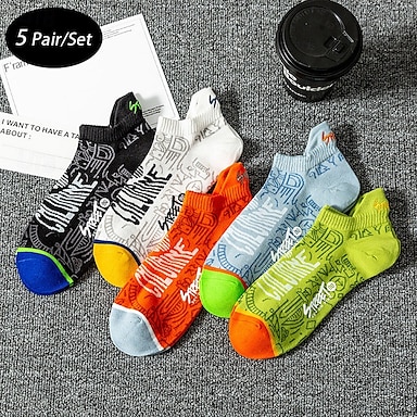 Hombre 5 pares Paquetes múltiples Calcetín Calcetines para correr Calcetines informales Negro Blanco Color Letra Vacaciones Deporte Diario Básico Medio Primavera Otoño Moda Casual