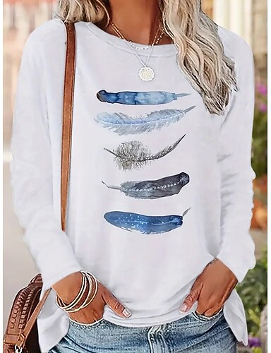 Camiseta de mujer de manga larga con cuello redondo de manga larga tunic gráfica simple elegante clásica casual de cuello alto prendas de fiesta ropa de noche impresiones diarias para salir