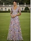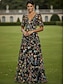 Corte A Vestidos Hasta el Suelo Vestido de Fiesta Vestido Cóctel Vestido de Madrina Media Manga Escote en Pico Elegante Vintage Lujoso Formal Invitado a la boda El derby de Kentucky Tul con Estampado