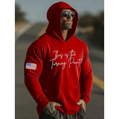 Hombre Bandera estadounidense Sudadera Moda Diario Casual retro de la vendimia Con Capucha Vacaciones Fiesta Ropa de calle Festival Azul Piscina Rojo rojo 2 Estampado Otoño Invierno Diseñador S M L