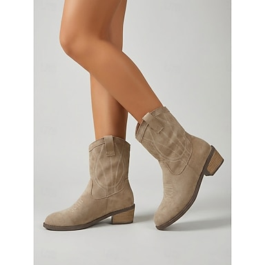 Botines vaqueros de ante color topo para mujer - botines vaqueros clásicos con bordado &tacón de bloque para festivales de música al aire libre y conciertos de música country. &estilo boho