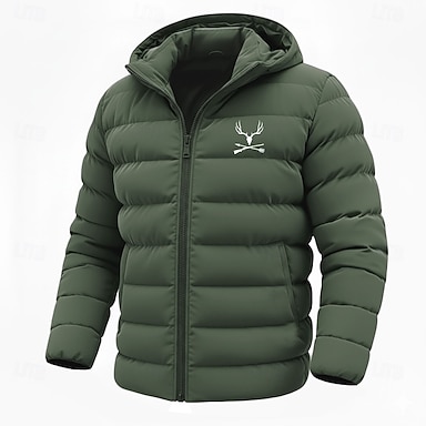 Hombre Impresión de vaca Abrigo de invierno Abajo Chaqueta acolchada Mantiene abrigado Resistente a la lluvia Ligero Casual Exterior Diario Chaqueta acolchada con capucha Otoño Invierno Manga Larga