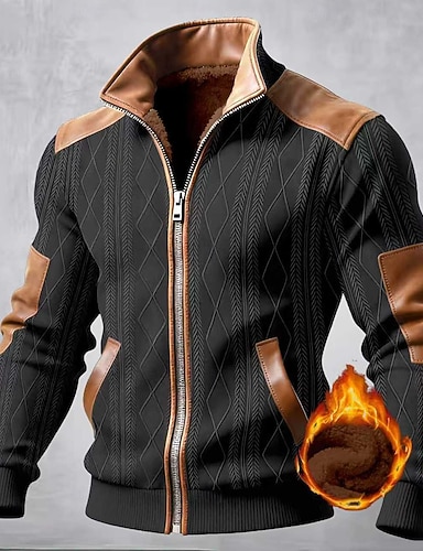 Hombre Chaqueta de lana Chaqueta casual Oficina Casual Confortable Retazos Bolsillo Otoño Otoño invierno Con Texturas Vintage Ropa de calle Cuello Vuelto Regular Azul Piscina Negro Blanco Verde