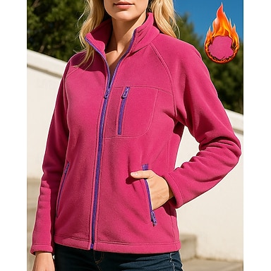Mujer Color sólido Abrigo de invierno Chaqueta con cremallera completa Chaqueta polar Otoño invierno Con bolsillos Manga Larga Ropa Deportiva Resistente al Viento Templado Senderismo Corriendo Viaje