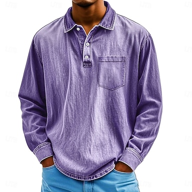 Hombre Camisetas polo de golf Calle Negocio Clásico Manga Larga Vintage Básico Color sólido Bolsillo Estilo retro Otoño Invierno Temporadas Cruzadas Ajuste regular Negro Azul Oscuro Verde Azul Claro