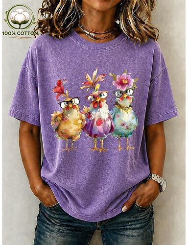Mujer 100% Algodón Camiseta Tops lavados estilo vintage Estampado Graphic Animal Elegante Básico Casual Manga Corta Cuello Barco Tops regulares Casual Diario Azul Piscina Negro Rosa Morado Marrón