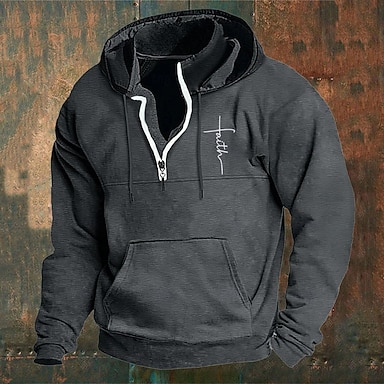 Hombre Sudadera Vino Azul Marino Verde Trébol Caqui Gris Ligero Con Capucha Cruz Bolsillo delantero Cremallera de un cuarto Diario Festivos Noche Poliéster Ropa de calle Casual Otoño Invierno Ropa